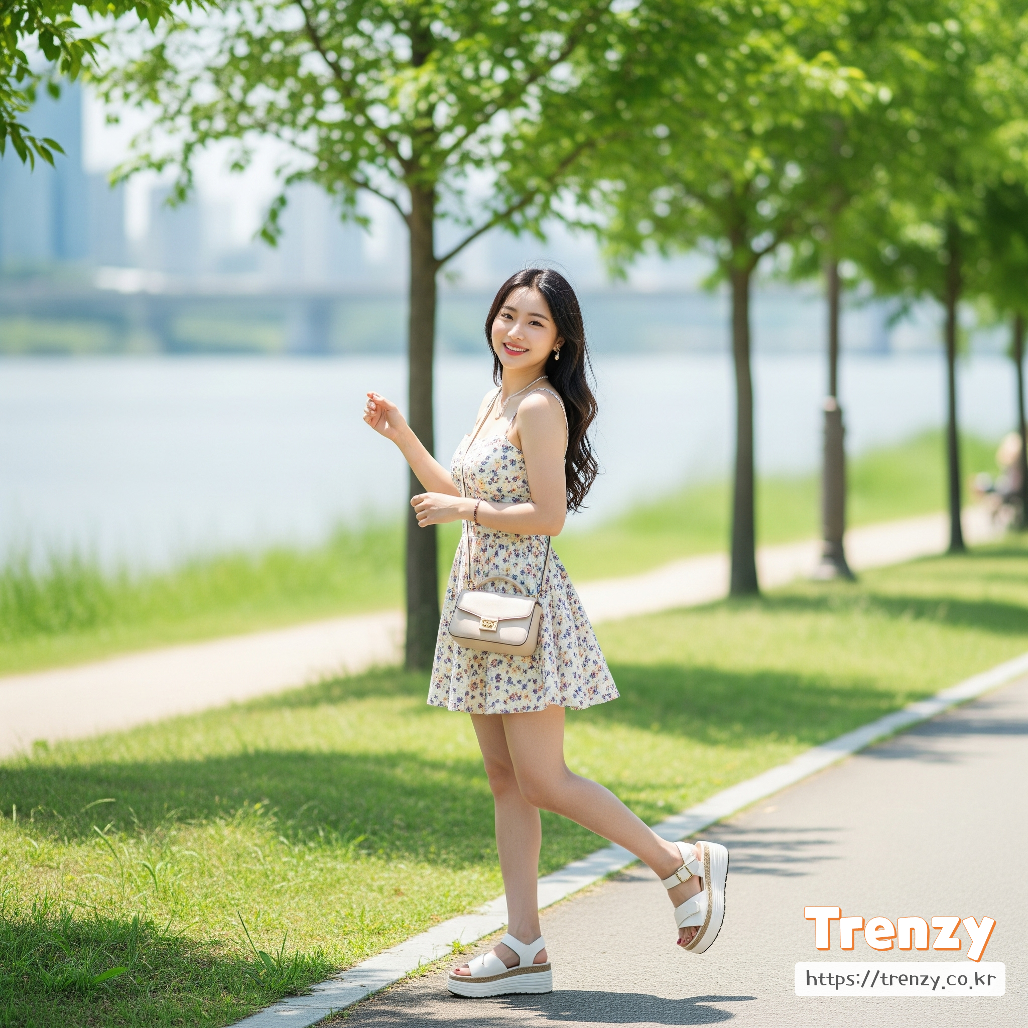 - 신발: 스트랩 샌들이나 웨지힐과 함께 매치